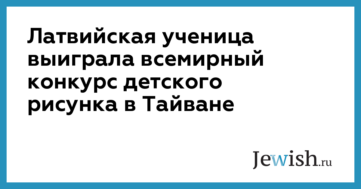 Ученица 8-го класса Рижской еврейской школы имени Шимона Дубнова Анна Ривкина стала обладательницей золотой медали ежегодной Всемирной выставки-конкурса детского изобразительного искусства, вручение которой состоялось в представительстве Тайбэйской миссии, сообщает D-pils.lv.
