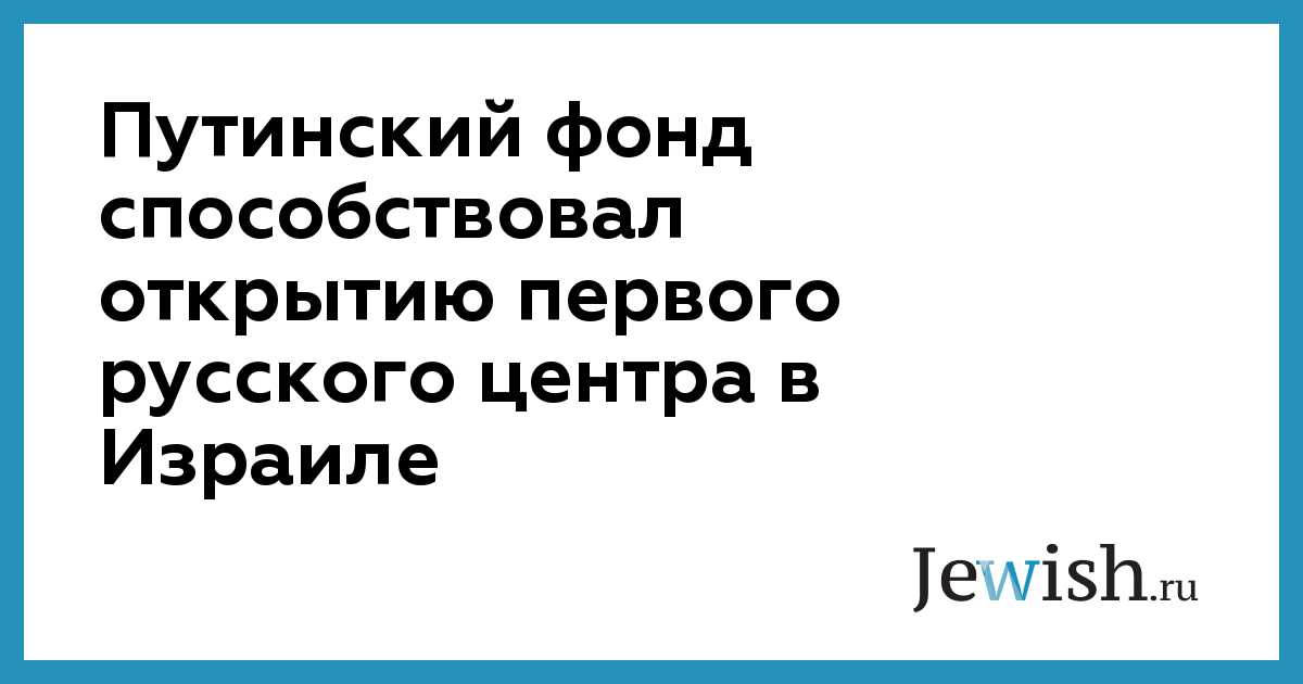 Путинский фонд способствовал открытию первого русского центра в Израиле