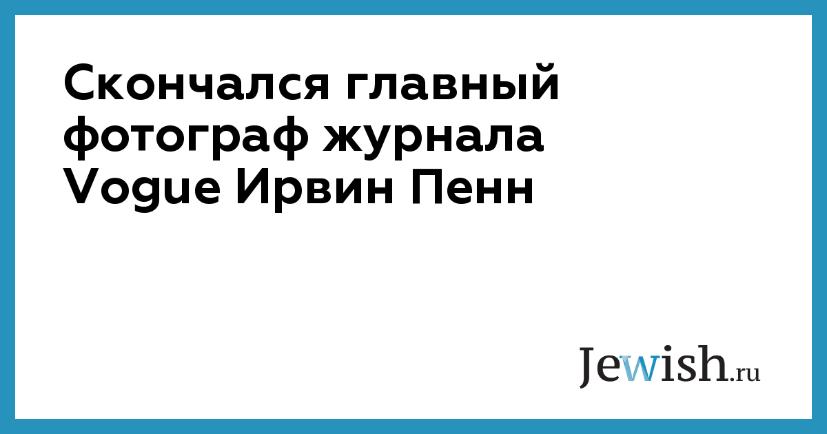 Скончался главный фотограф журнала Vogue Ирвин Пенн