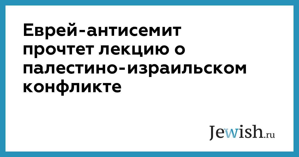 Еврей-антисемит прочтет лекцию о палестино-израильском конфликте
