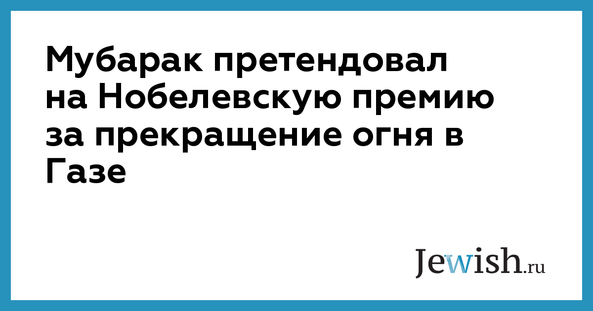 Мубарак претендовал на Нобелевскую премию за прекращение огня в Газе