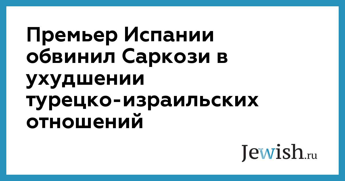 Премьер-министр Испании Хосе Луис Запатеро, находящийся с официальным визитом в Израиле, назвал президента Франции Николя Саркози главным виновником ухудшения отношений между Турцией и Израилем.