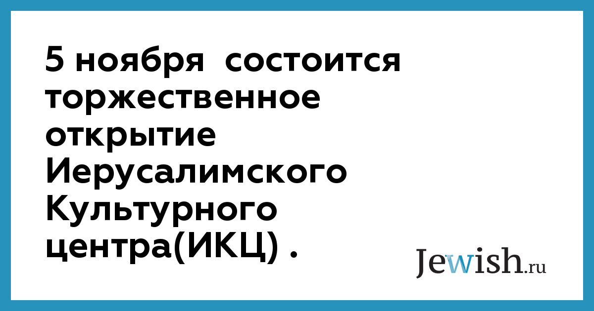 5 ноября состоится торжественное открытие Иерусалимского Культурного центра(ИКЦ) .
