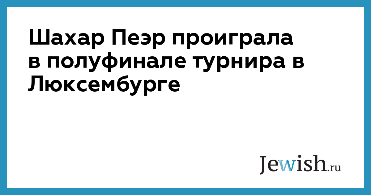 Сильнейшая израильская теннисистка Шахар Пеэр не сумела пробиться в финал турнира серии International с призовым фондом 200 тыс. долларов, который проходит в Люксембурге. В полуфинале Пеэр проиграла немке Сабин Лисицки со счетом 3:6, 6:4, 6:7.
