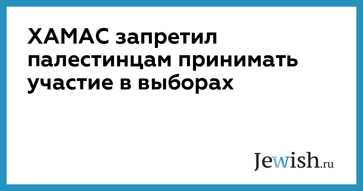 Как сообщает палестинское агентство новостей MAAN, правительство ХАМАСа в секторе Газа запретило жителям сектора принимать участие во всеобщих выборах в палестинский парламент, которые должны состояться 24 января 2010 года.