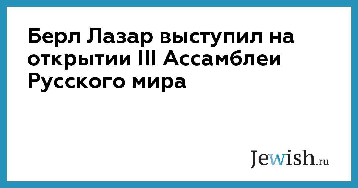 Сегодня главный раввин России Берл Лазар выступил с обращением на открытии III Ассамблеи Русского мира, где ежегодно собираются представители более 60 стран, в том числе государственные и общественные деятели РФ, авторитетные отечественные и иностранные ученые, лучшие преподаватели русского языка в России и зарубежье, известные литераторы, публицисты и издатели, деятели искусства.
