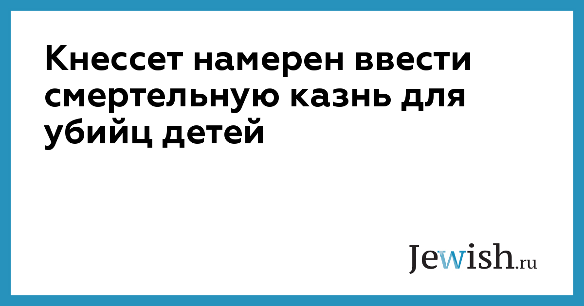 Убийцы детей, возраст которых не достиг 13 лет, будут приговорены к смертной казни. Такой законопроект вынесли на рассмотрение Кнессета четыре депутата.