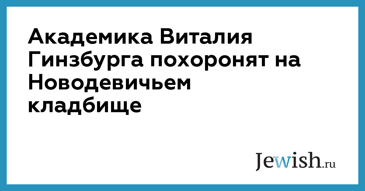 Академик Российской академии наук, физик-теоретик Виталий Гинзбург будет похоронен на Новодевичьем кладбище. По словам вице-президента РАН Геннадия Месяца, вероятность того, что Гинзбурга похоронят на Новодевичьем кладбище, — 99 процентов. Однако вопрос о месте погребения еще обсуждается.