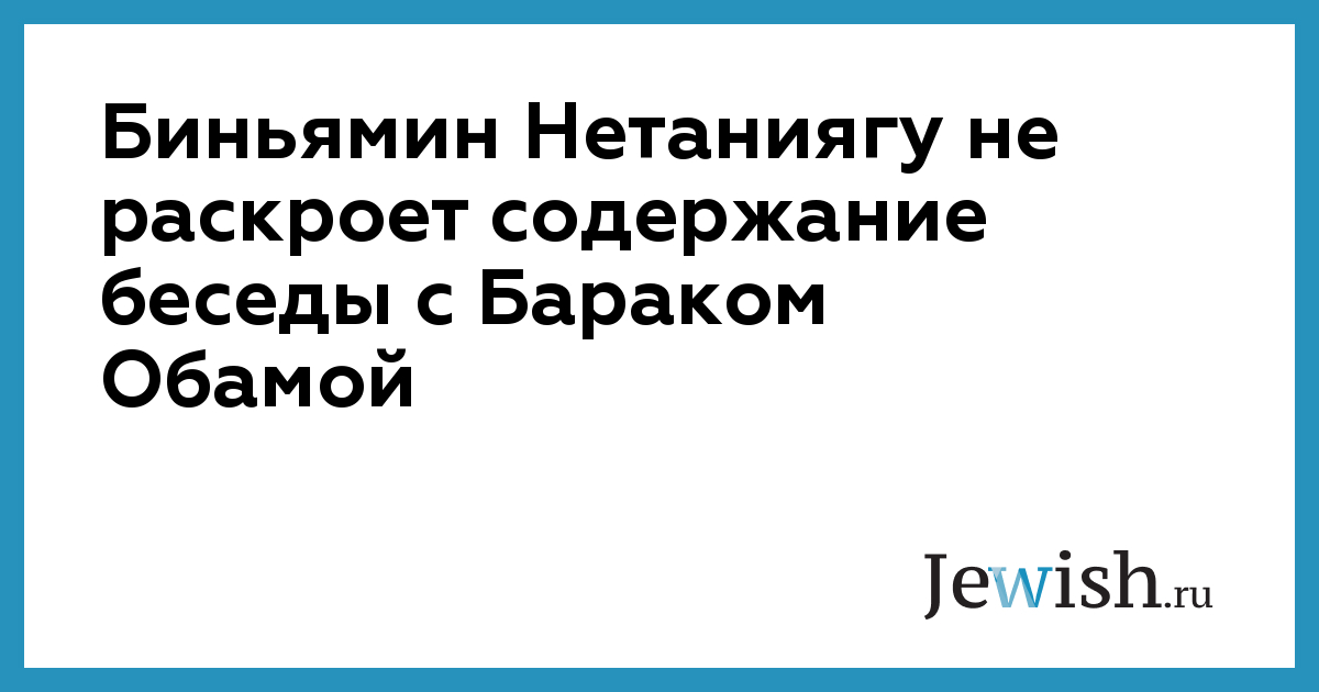 Биньямин Нетаниягу не раскроет содержание беседы с Бараком Обамой