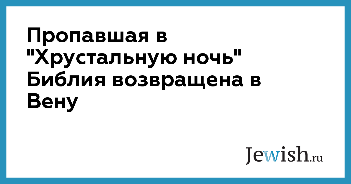 Пропавшая в "Хрустальную ночь" Библия возвращена в Вену