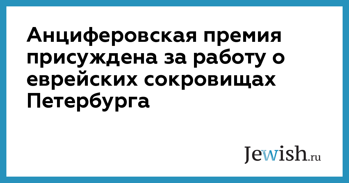 Анциферовская премия присуждена за работу о еврейских сокровищах Петербурга