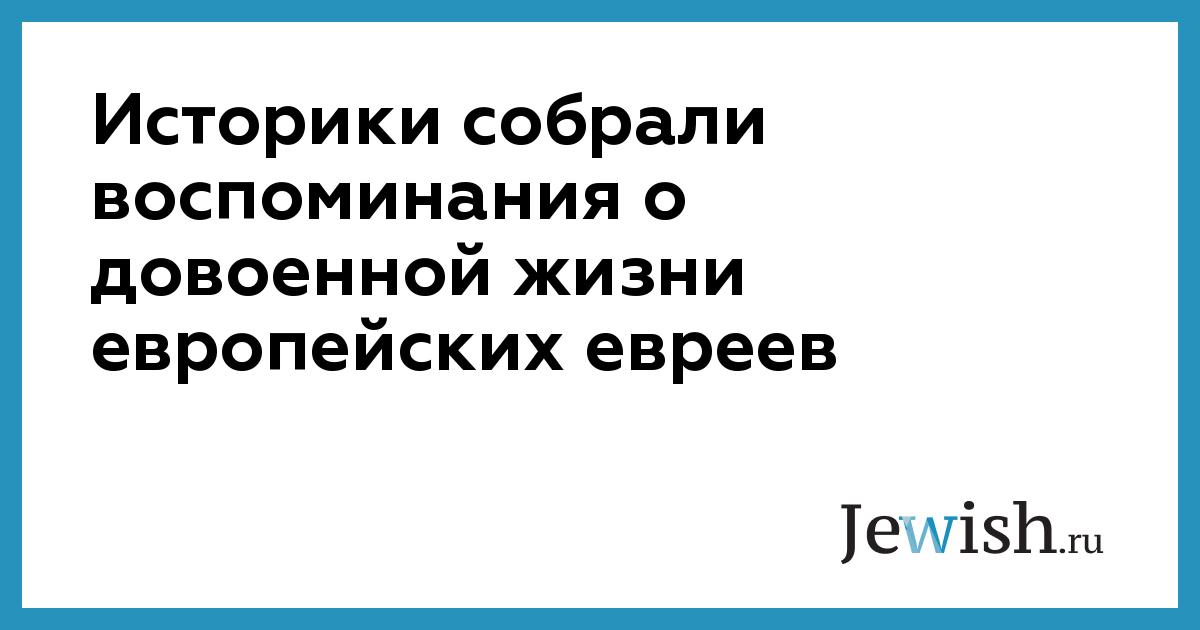 Историки собрали воспоминания о довоенной жизни европейских евреев
