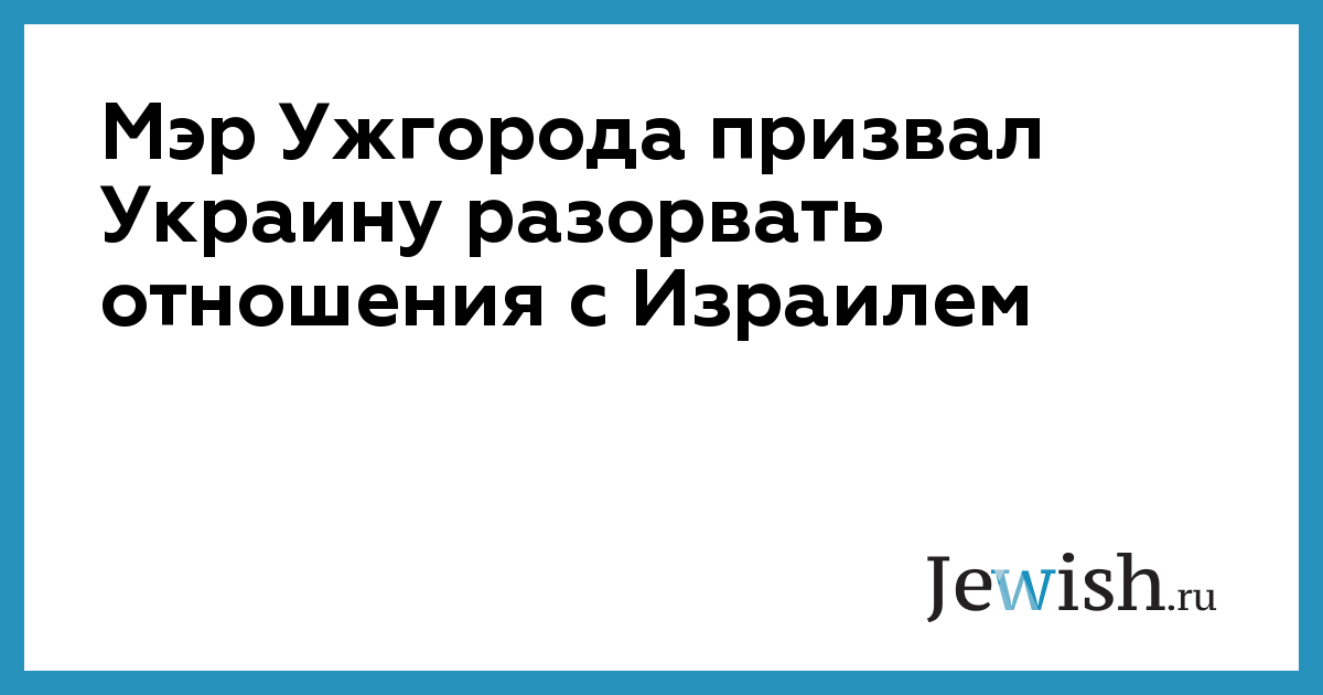 Мэр Ужгорода призвал Украину разорвать отношения с Израилем