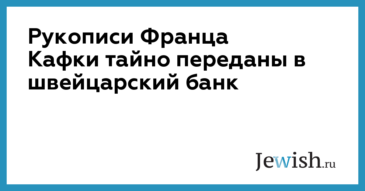 "Многочисленные рукописи Кафки находятся в цюрихском банке. Сейф принадлежит Хаве Хупа – 75-летней дочери покойной подруги и секретарши Макса Брода, которая тайно переправила бесценные памятники культуры за границу", — сообщает германский еженедельник Die Zeit, выходящий в Гамбурге.