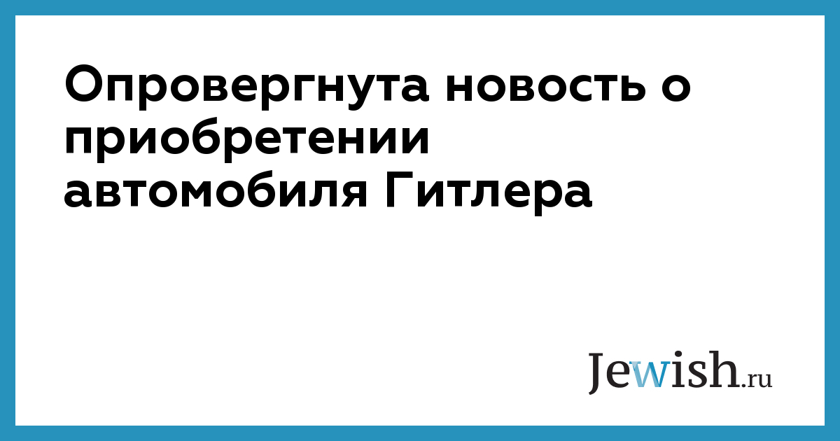 Специалист Михаэль Фройлих опроверг слухи о том, что любимую машину фюрера приобрел миллиардер из России.