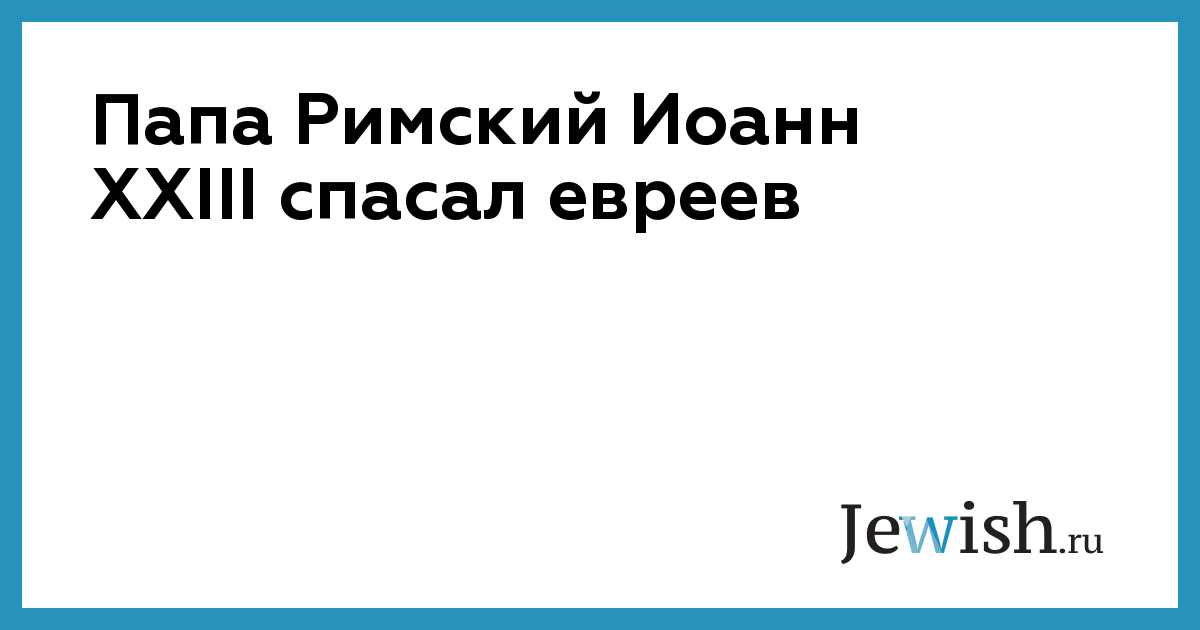 Папа Римский Иоанн XXIII спасал евреев