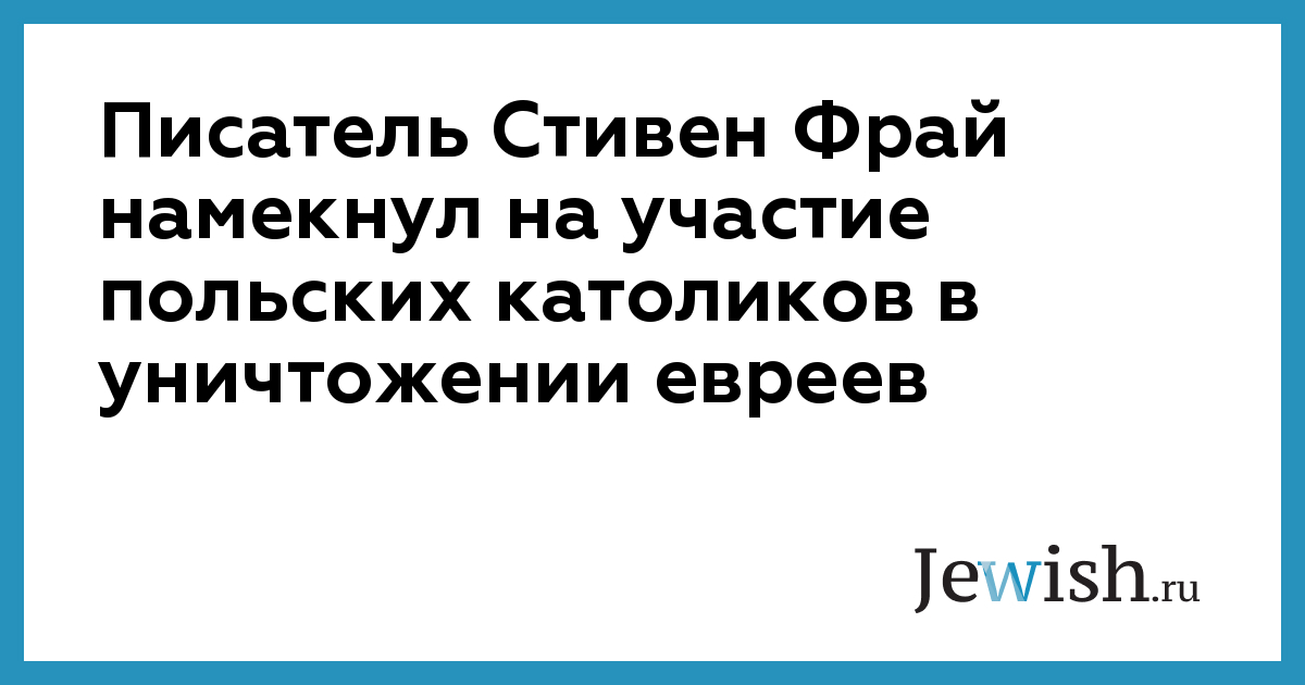 Писатель Стивен Фрай намекнул на участие польских католиков в уничтожении евреев