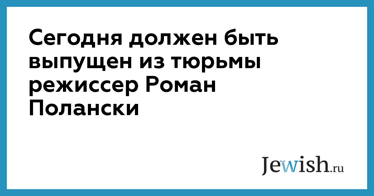 Сегодня должен быть выпущен из тюрьмы режиссер Роман Полански