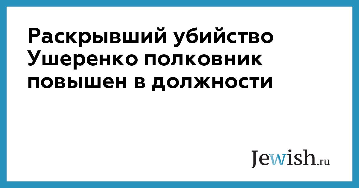 Раскрывший убийство Ушеренко полковник повышен в должности