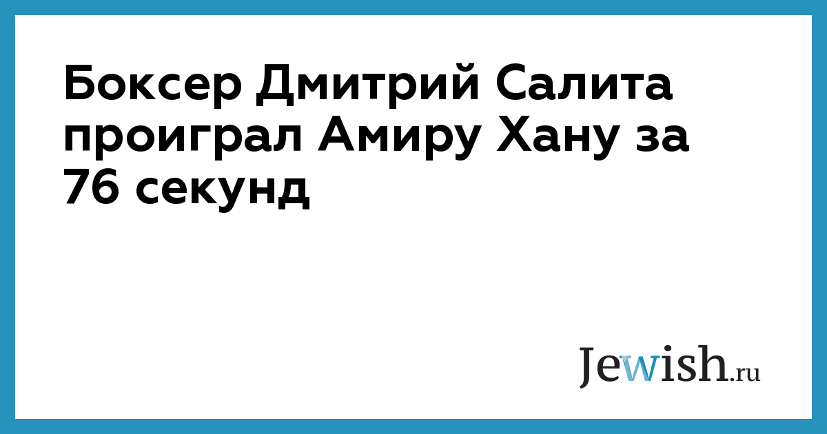 Британец пакистанского происхождения Амир Хан защитил титул чемпиона мира по версии WBA в весе 63,5 кг. В английском городе Ньюкасле Хан выиграл у своего соперника - гражданина Соединенных Штатов Дмитрия Салиты — техническим нокаутом в 1-м раунде.