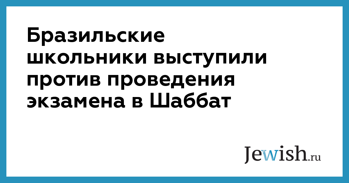 На этой неделе бразильские школьники выступили против проведения выпускного экзамена в Шаббат. Незадолго до этого бразильский суд заявил о том, что назначение альтернативной даты проведения экзамена "нарушило бы равенство".