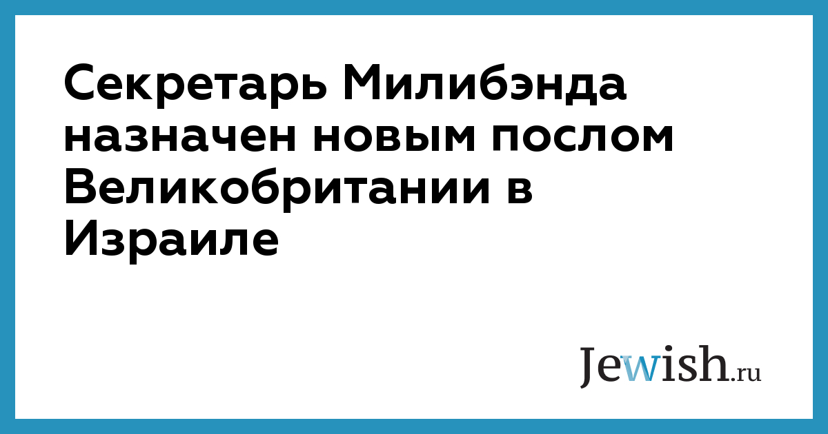 Секретарь Милибэнда назначен новым послом Великобритании в Израиле