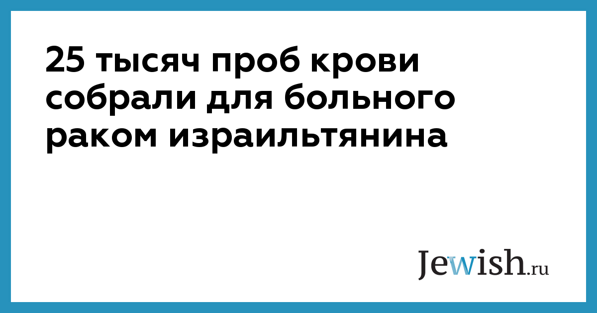 В ходе состоявшейся во вторник всеизраильской акции по сбору проб крови для внесения в базу данных потенциальных доноров стволовых клеток костного мозга в целях поиска донора для Ильи Товбейна удалось собрать 25 тыс проб.