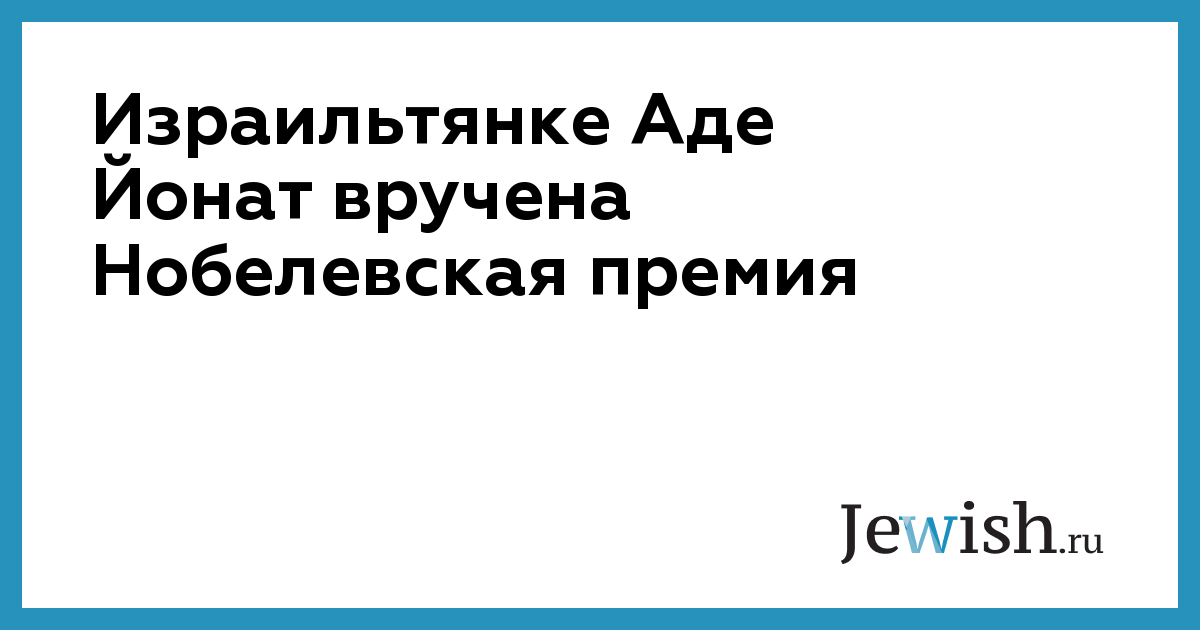 Израильтянке Аде Йонат вручена Нобелевская премия