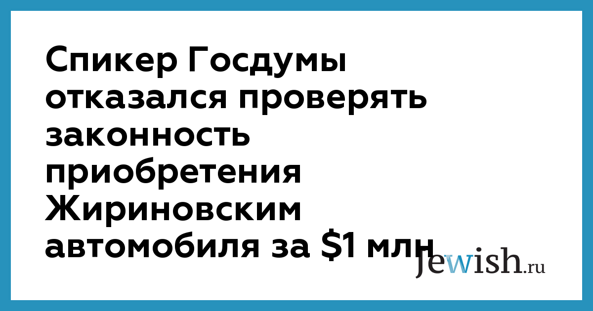 Спикер Госдумы отказался проверять законность приобретения Жириновским автомобиля за $1 млн