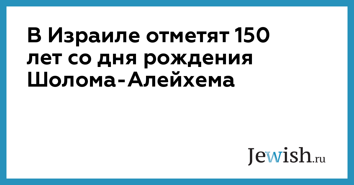 В Израиле отметят 150 лет со дня рождения Шолома-Алейхема