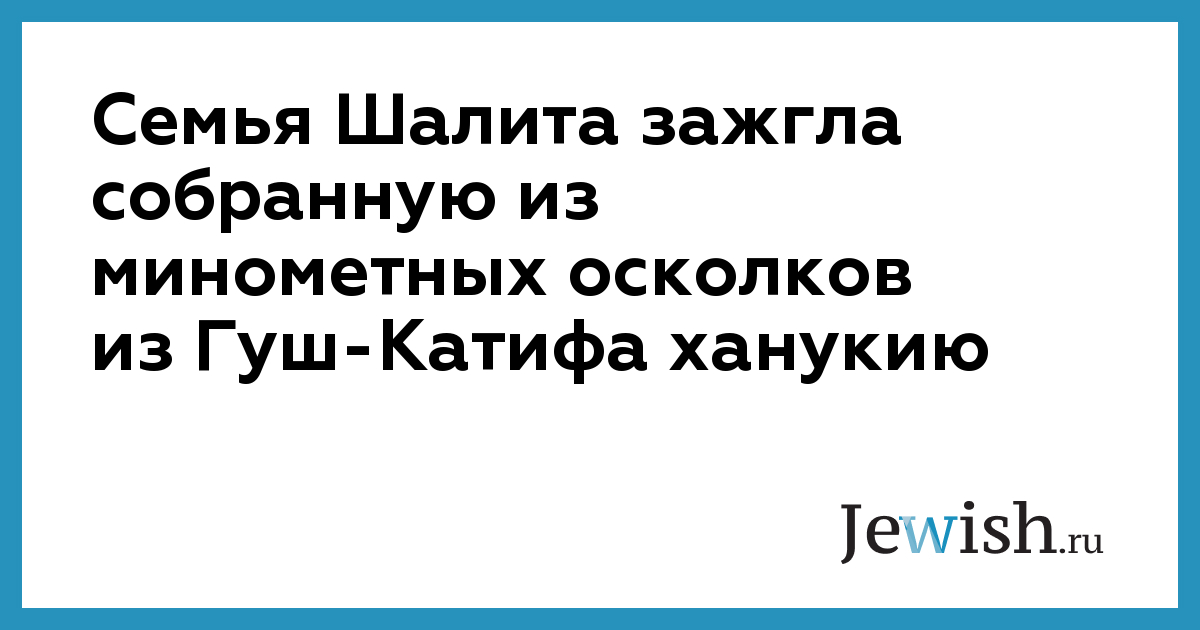 Семья Шалита зажгла собранную из минометных осколков из Гуш-Катифа ханукию