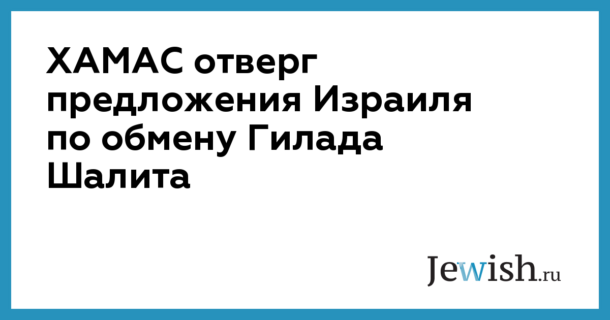 ХАМАС отклонил предложение правительства Нетаниягу по сделке Шалита, переданное его руководству германским посредником. Как сообщает телеканал "Аль-Арабия" со ссылкой на источник в ХАМАСе, после подробных обсуждений израильского предложения членами политбюро ХАМАСа в Дамаске было решено отвергнуть его.