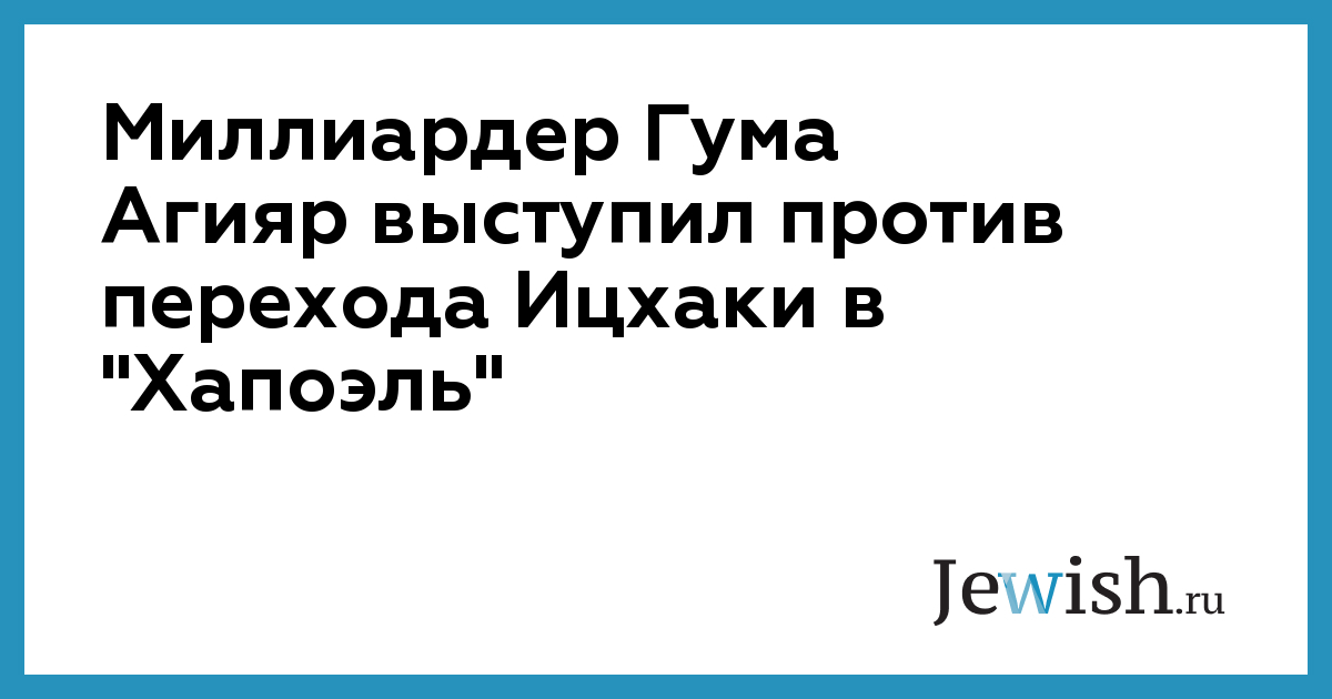 Миллиардер Гума Агияр выступил против перехода Ицхаки в "Хапоэль"