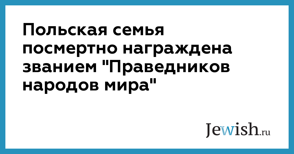 Польская семья посмертно награждена званием "Праведников народов мира"