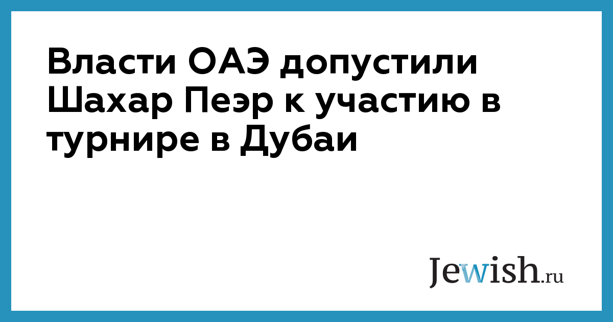 Сильнейшая теннисистка Израиля Шахар Пеэр сможет принять участие в турнире в Дубаи, который пройдет с 15 по 21 февраля. Власти Объединенных Арабских Эмиратов выдадут ей визу. WTA получила гарантии Министерства иностранных дел ОАЭ.
