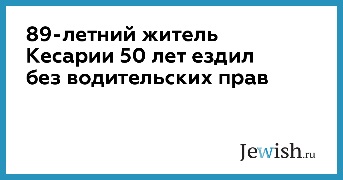 Во вторник 89-летний житель Кесарии был пойман полицией Ор-Акивы за вождение автомобиля без израильских прав. Когда полицейские спросили его, как он ездил без прав, он ответил, что у него есть уругвайские права, и он считал, что этого достаточно. Однако уругвайские права он тоже не предъявил. Задержанный сказал, что у него никогда не было израильских прав на вождение машины, и он ездит так уже 50 лет.