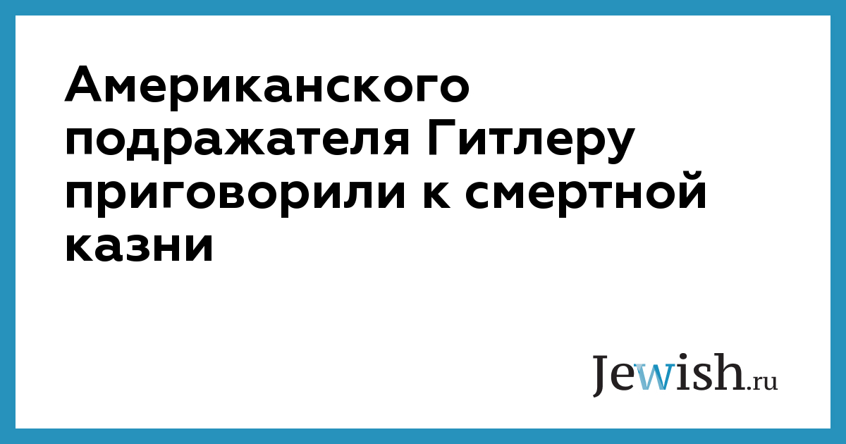 Американского подражателя Гитлеру приговорили к смертной казни