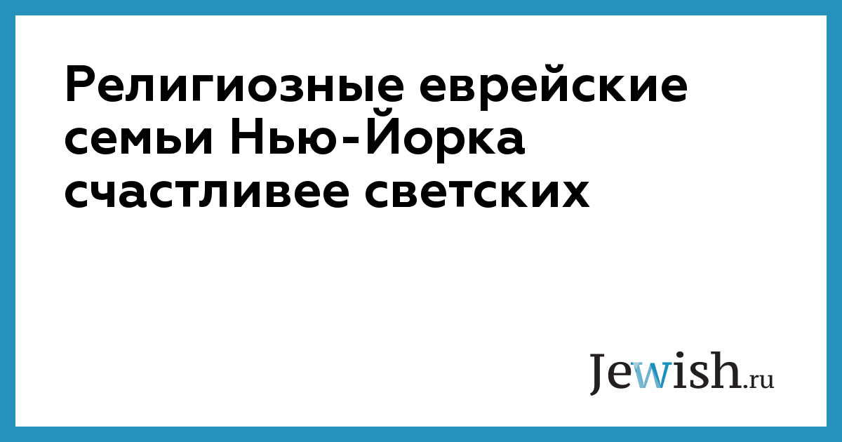 Религиозные еврейские семьи Нью-Йорка счастливее светских
