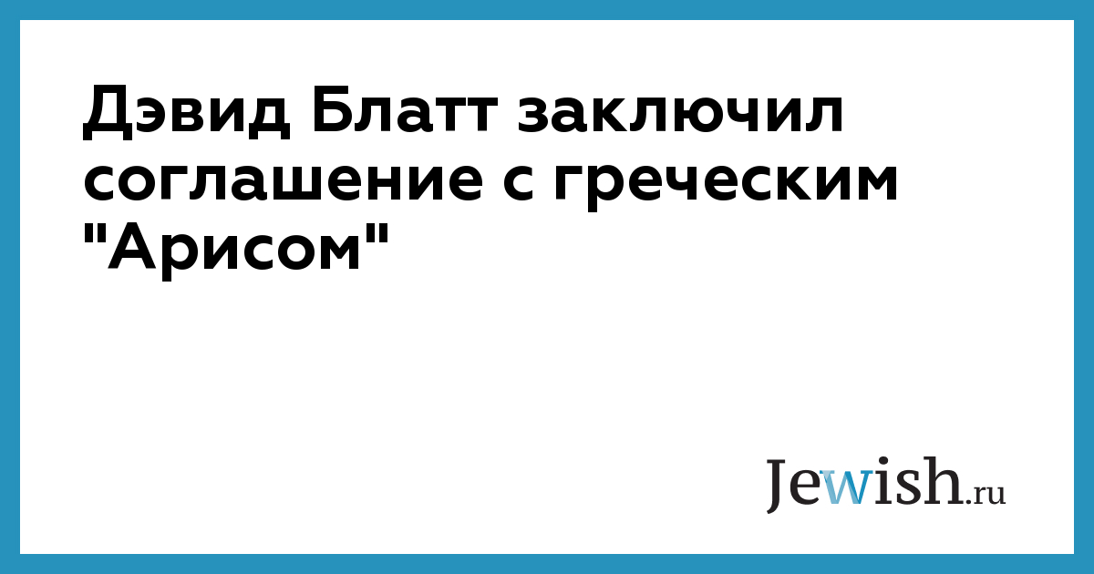 Дэвид Блатт заключил соглашение с греческим "Арисом"