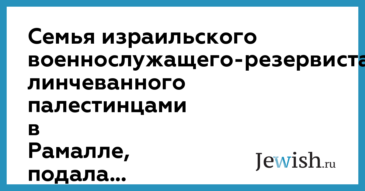 Семья израильского военнослужащего-резервиста, линчеванного палестинцами в Рамалле, подала...