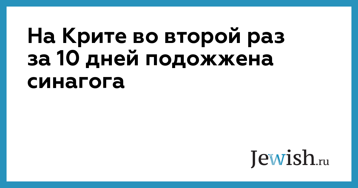 Синагога в городе Ханья на греческом острове Крит была подожжена в ночь на субботу во второй раз за десять дней, сообщила полиция.