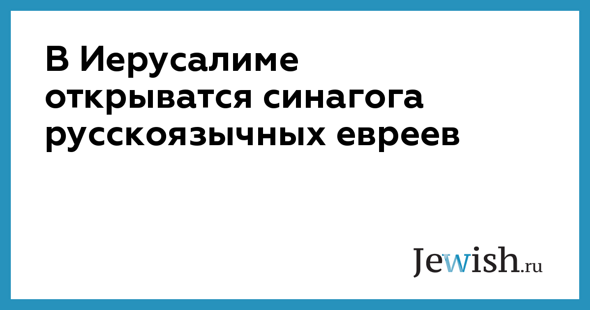В Иерусалиме открыватся синагога русскоязычных евреев
