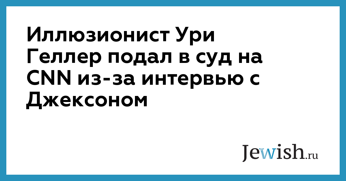 Израильско-британский иллюзионист Ури Геллер, известный благодаря трюку со сгибанием металлических ложек и с остановкой механических часов на лондонской башне Биг-Бен, подал иск против американской телевизионной компании CNN за сообщение о том, что он "продал" интервью с Майклом Джексоном за 200 тыс долларов.