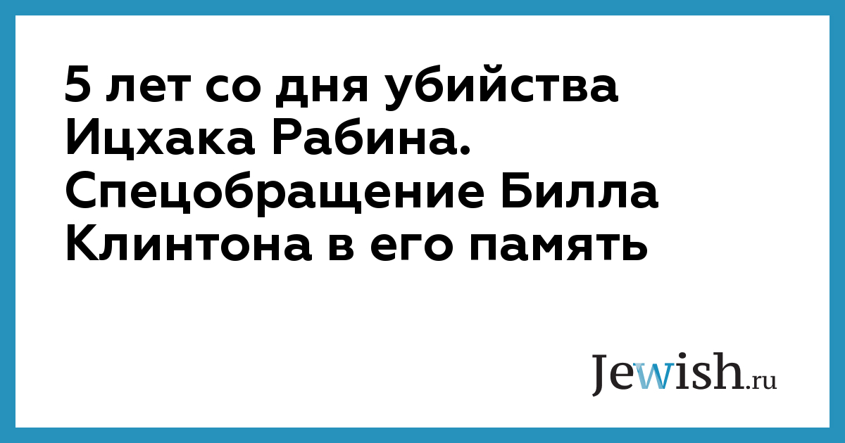 5 лет со дня убийства Ицхака Рабина. Спецобращение Билла Клинтона в его память