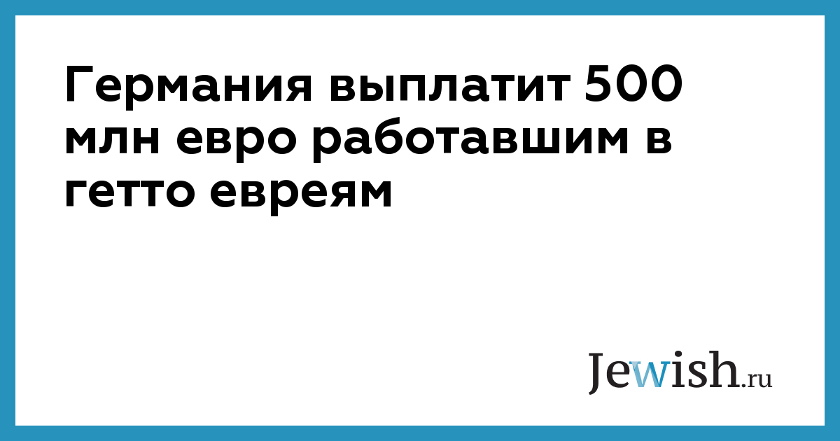 Суд по социальному обеспечению в Эссене принял решение, согласно которому евреям, принудительно работавшим на Германию в гетто в период Второй мировой войны, будет выплачена компенсация общей суммой в 500 млн евро.