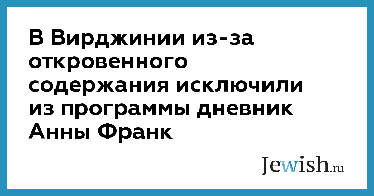 Школьная администрация округа Калперер, штат Вирджиния, постановила исключить из учебной программы новую версию дневника Анны Франк — еврейской девушки-подростка, погибшей в нацистском концлагере.