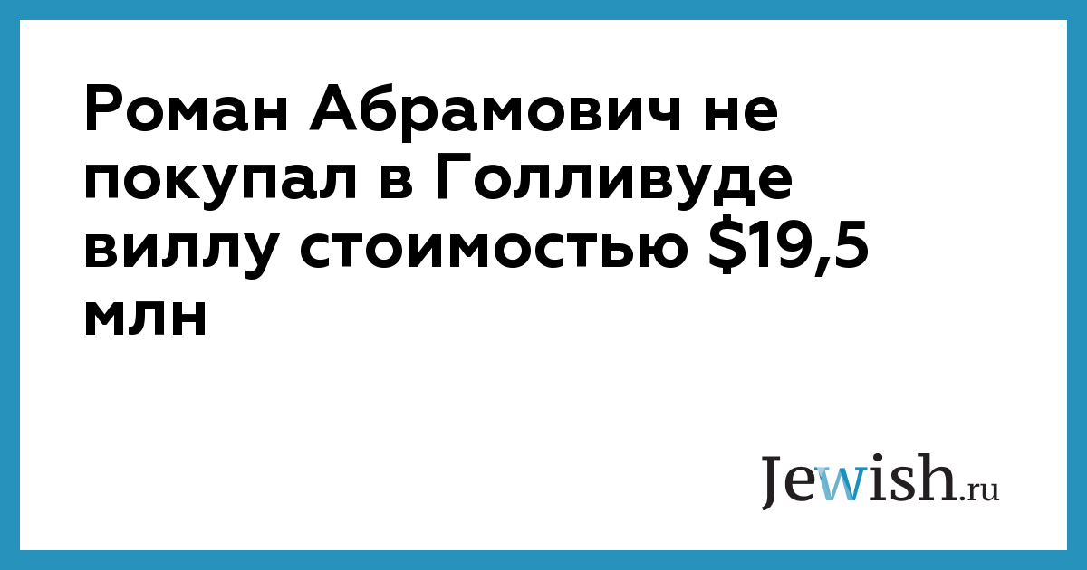 Роман Абрамович не покупал в Голливуде виллу стоимостью $19,5 млн
