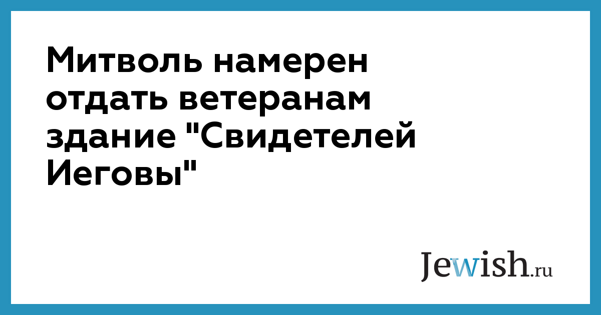 Митволь намерен отдать ветеранам здание "Свидетелей Иеговы"
