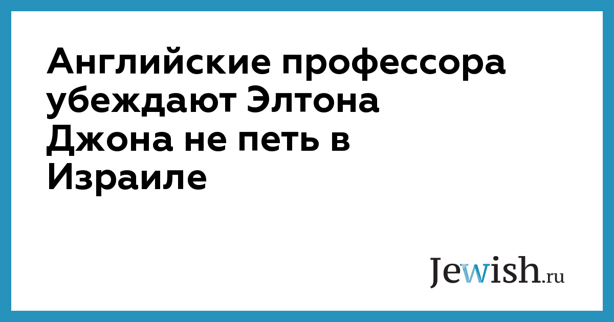 Группа английских вузовских преподавателей во главе с профессором Хаимом Берешитом безуспешно призывал Леонарда Коэна не выступать в Израиле, а теперь обратилась с той же просьбой к Элтону Джону.