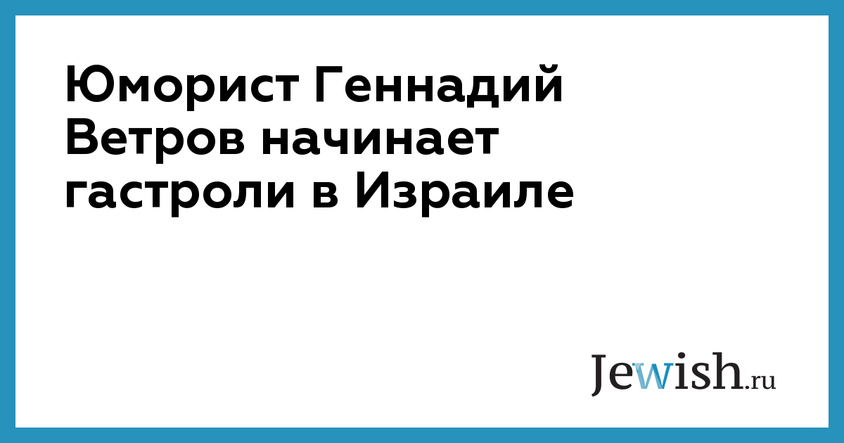 Встретиться с Геннадием Ветровым и другими российскими юмористами можно будет в Ашкелоне 15 февраля, в Тель-Авиве 16 февраля, в Петах-Тикве 18 февраля, в Кирьят-Моцкине 19 февраля и в Беэр-Шеве 20 февраля.